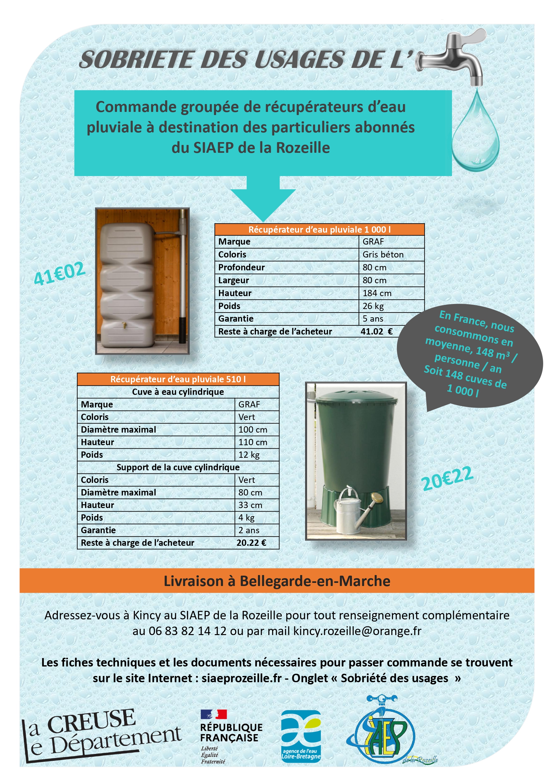 Adressez-vous à Mélanie au SIAEP de la Rozeille pour tout renseignement complémentaire au 06 83 82 14 12 ou par mail  kincy.rozeille@orange.fr