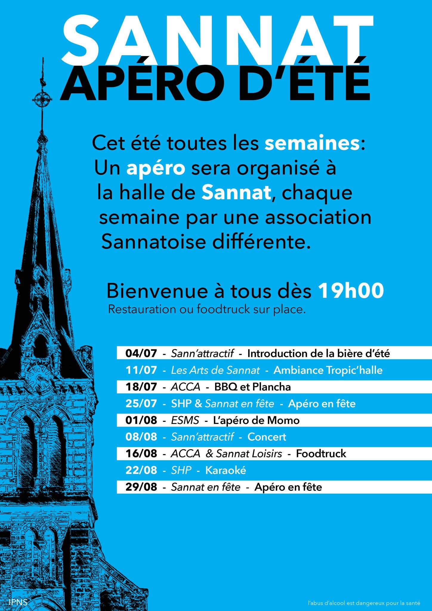 Apéro du vendredi Apéro sous la halle tous les vendredis à partir de 19h organisés par ACCA, ESMS, Les Arts de Sannat, Sann’Attractif, Sannat en fêtes, SHP Bière de l’été, concert, karaoké, fooddtruck, etc… + Ajouter à mon Agenda Google + iCal / Outlook export Date 16 Août 2025 Expired! Heure All Day Lieu Sous la halle Organisateur ACCA Rechercher : Articles récents Randonnée Budelière – 15 Novembre – Commémoration du 11 Novembre Changements horaires Mairie Achat groupé de récupérateurs d’eau pluviale Présence Bus des Services – Semaine impaire Commentaires récents